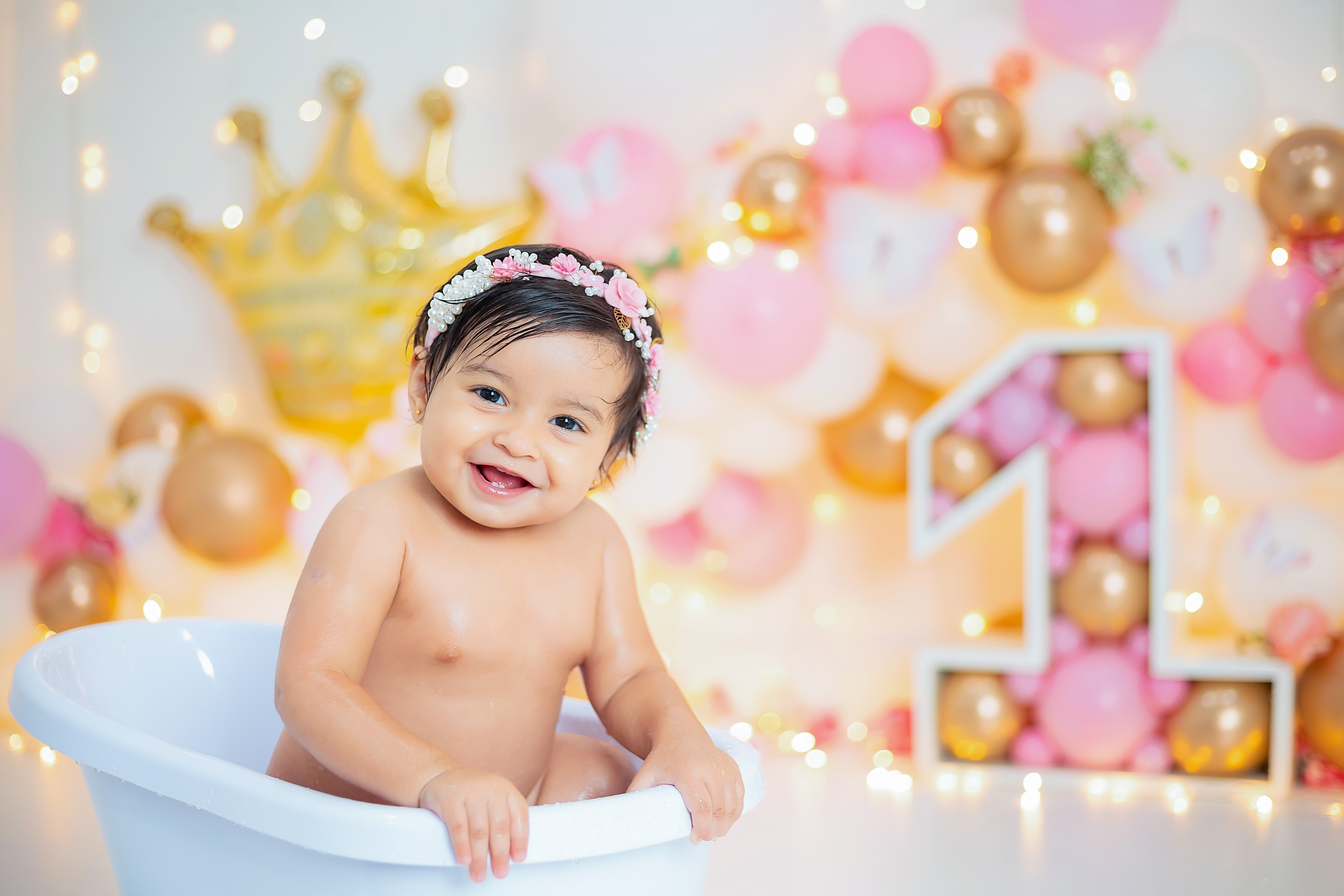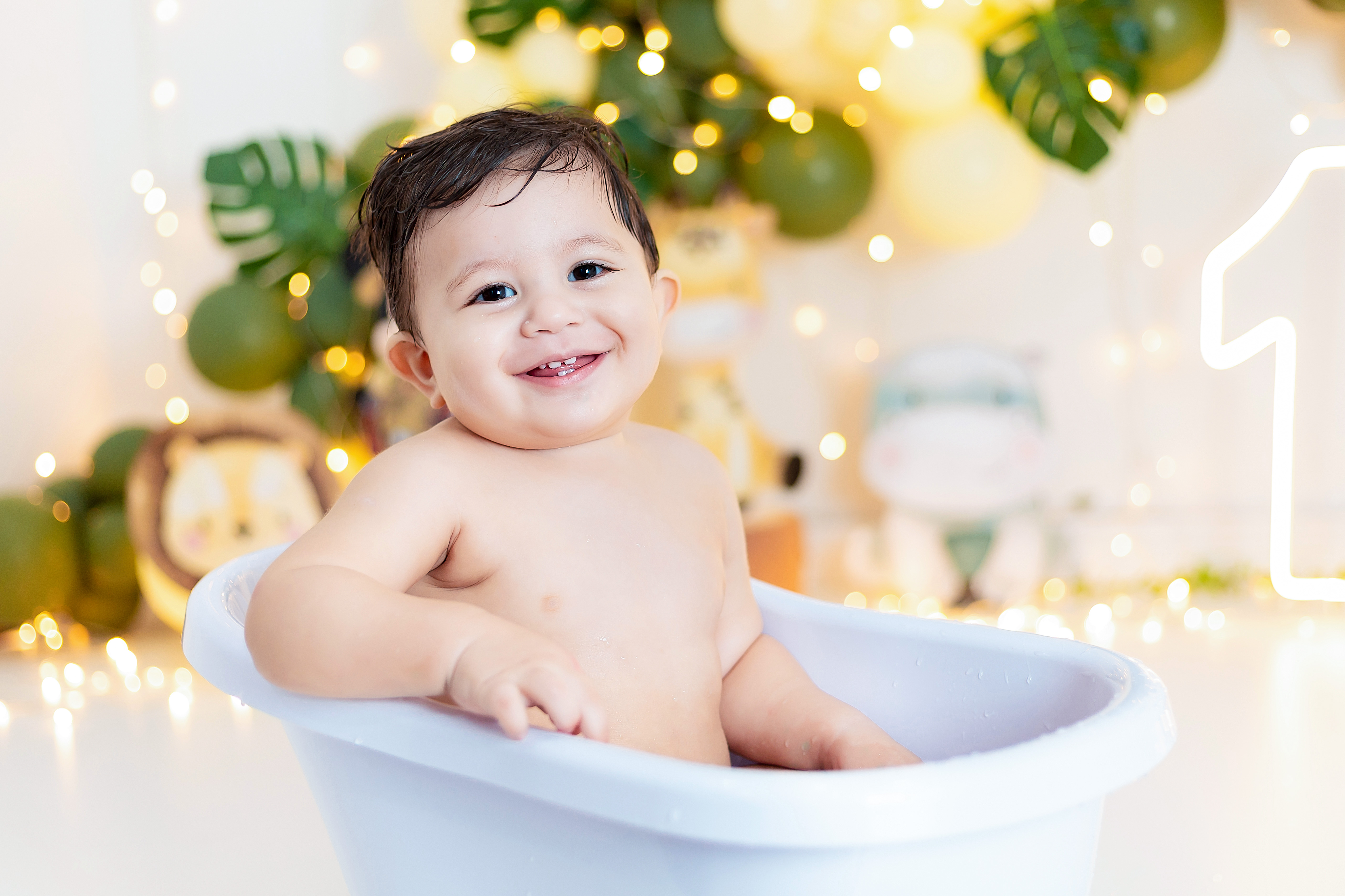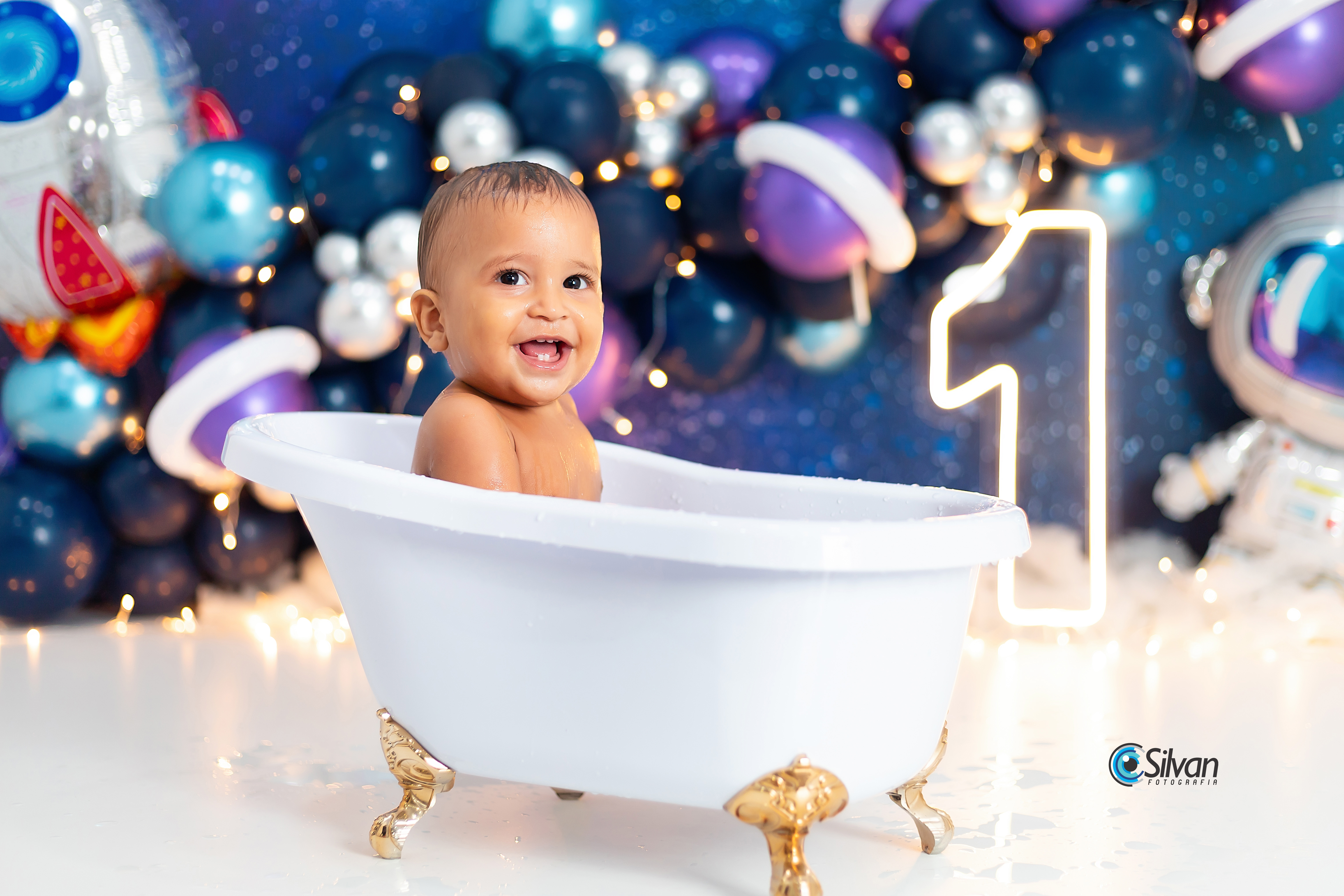 Para finalizar temos o momento do banho, a maioria dos bebês se divertem muito nessa parte do ensaio.